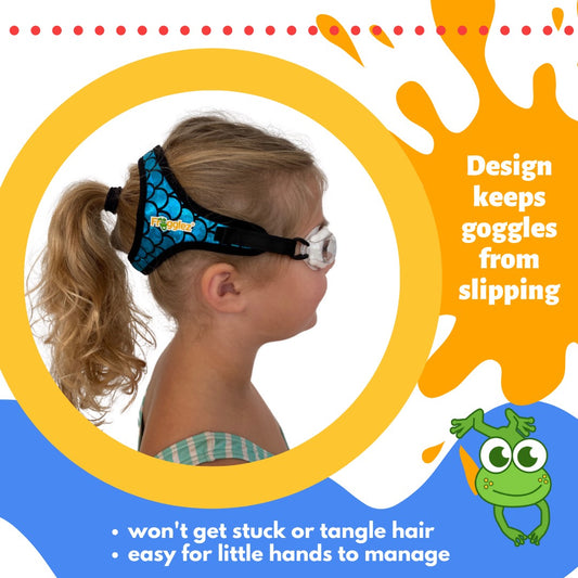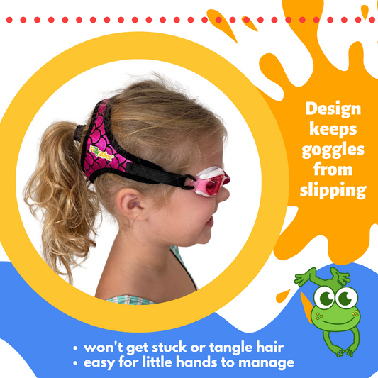 Frogglez are so easy to use, stay in place, and won't pull hair. We guarantee you won't find more comfortable kid's swim goggles.